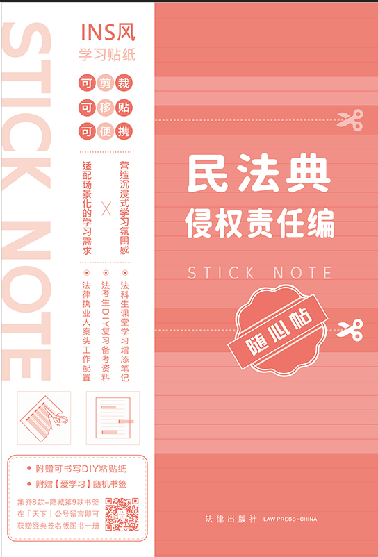 "本書立意于打破法律學(xué)習(xí)的枯燥沉悶,創(chuàng)意設(shè)計(jì)可剪裁、可移貼、可便攜的創(chuàng)意口袋學(xué)習(xí)本,治愈的多巴胺色彩、隨心適配的便捷自在,營(yíng)造沉浸式學(xué)習(xí)氛圍感。